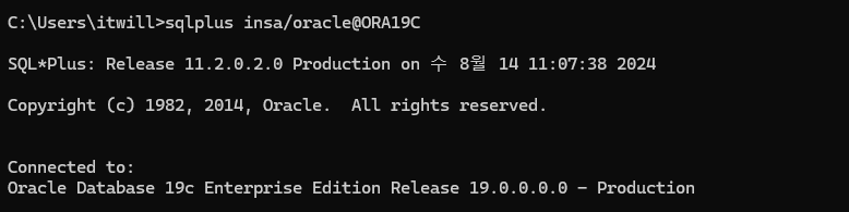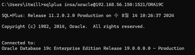 C:\Users\itwill>sqlplus insa/oracle@192.168.56.150:1521/ORA19C
