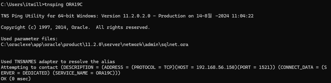 ORA19C(tns별칭으로 아무거나 해도 상관 없다) =