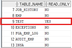 SELECT table_name, read_only FROM dba_tables WHERE owner = 'HR' ;