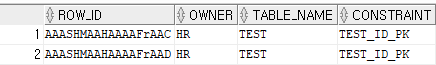 SELECT * FROM dba_constraints WHERE owner = 'HR' AND table_name = 'TEST';