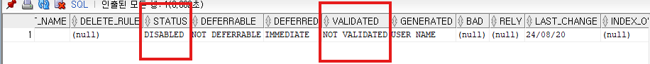 - DEFERRABLE 컬럼이 DEFERRABLE로 변경되고 INDEX도 NONUNIQUE로 변경된걸 확인할 수 있다.