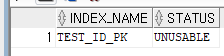 SELECT index_name, status FROM dba_indexes WHERE owner = 'HR' AND table_name = 'TEST';