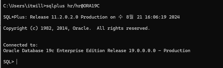 CONNECT TO hr IDENTIFIED BY hr --접속하려는 user and 비밀번호