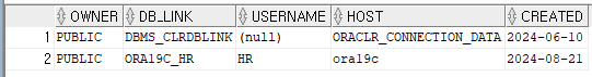 CREATE PUBLIC DATABASE LINK ora19c_hr --dblink 이름