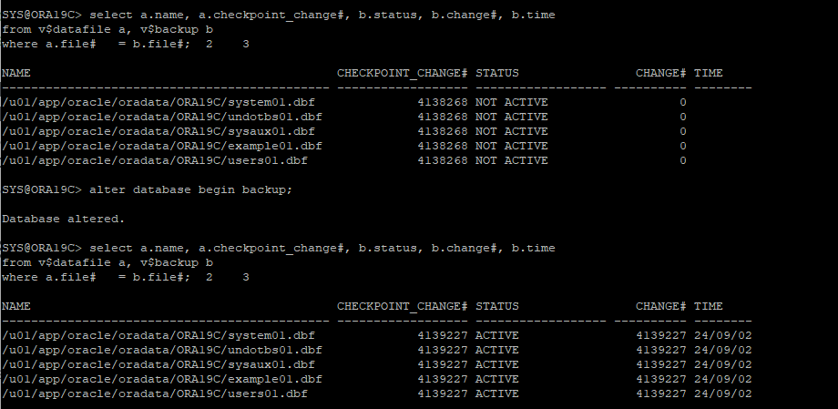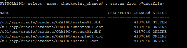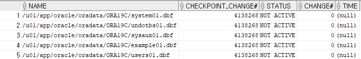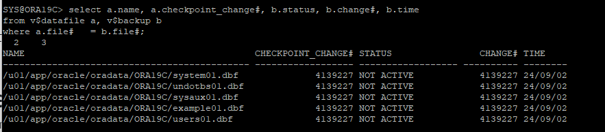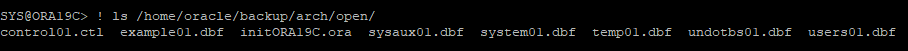 $ORACLE_BASE/oradata/ORA19C/*.dbf -> /home/oracle/backup/arch/open