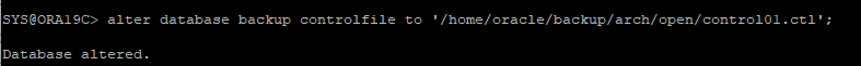 alter database backup controlfile to '/home/oracle/backup/arch/open/control01.ctl';