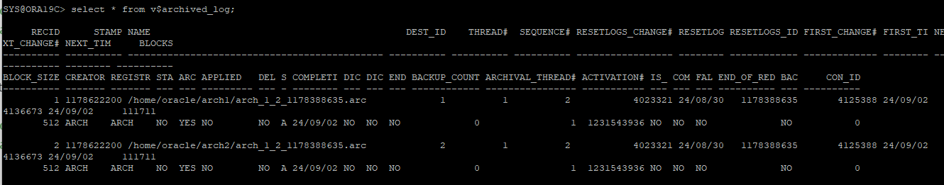 select * from v$archived_log;
