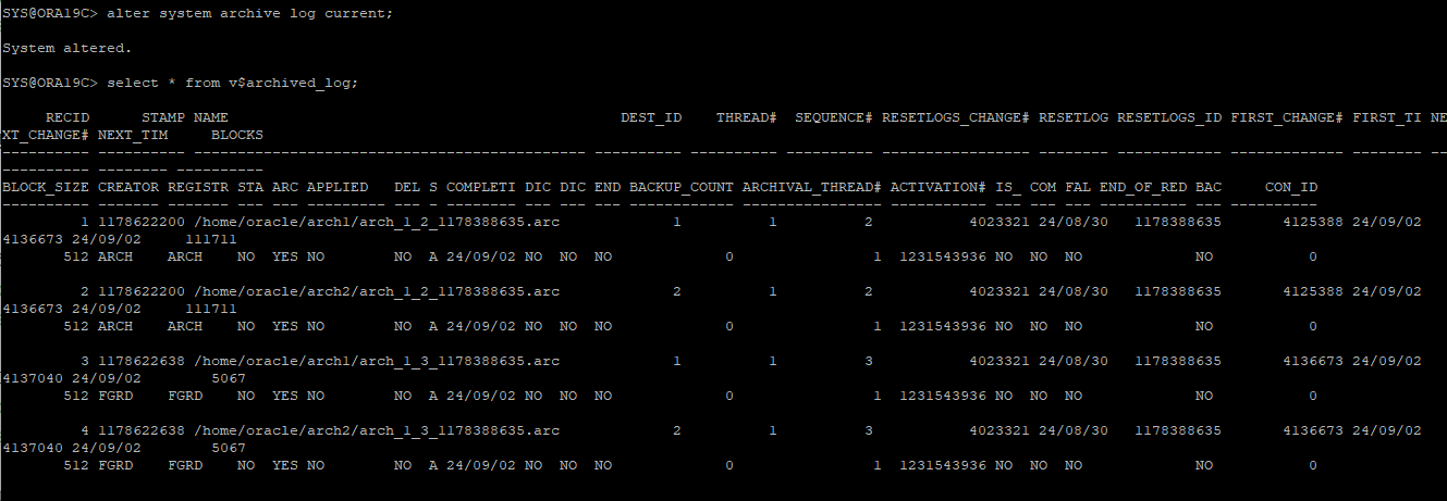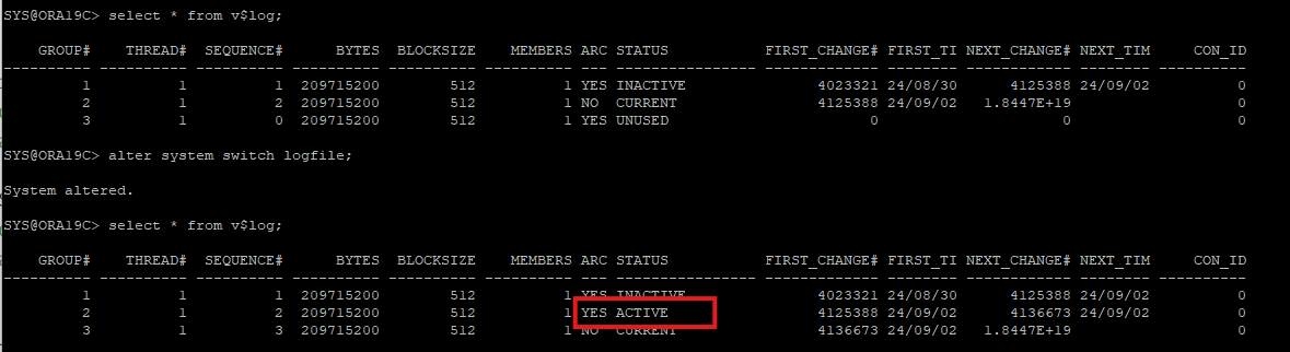 alter system archive log current;