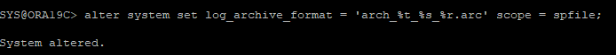 alter system set log_archive_format = 'arch_%t_%s_%r.arc' scope = spfile;