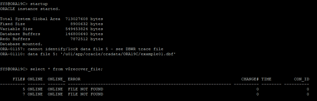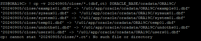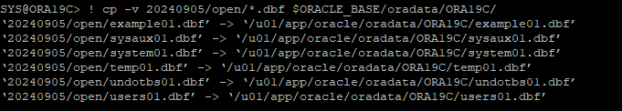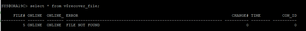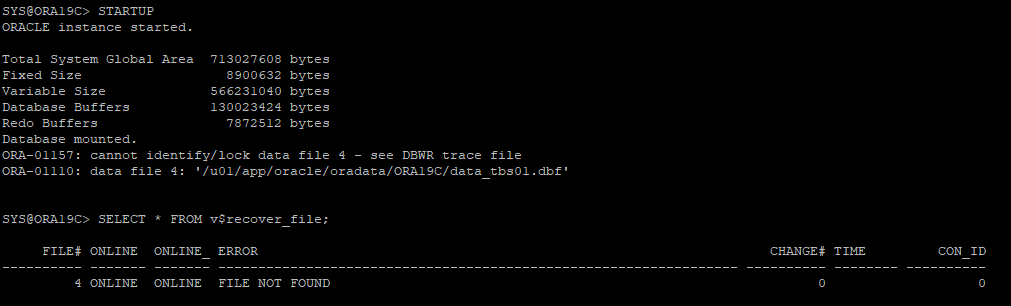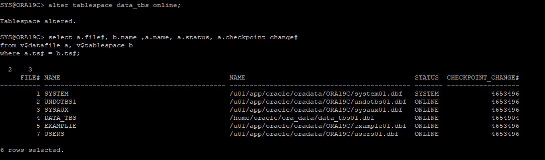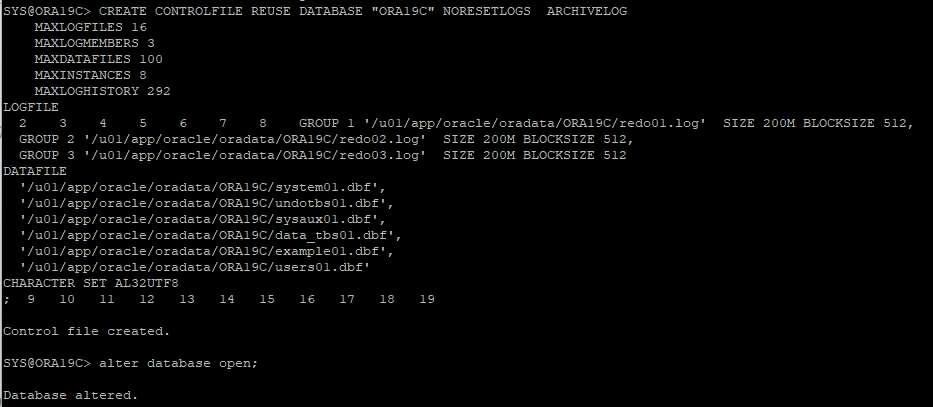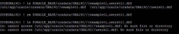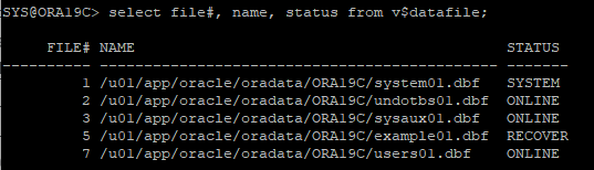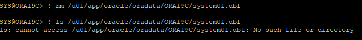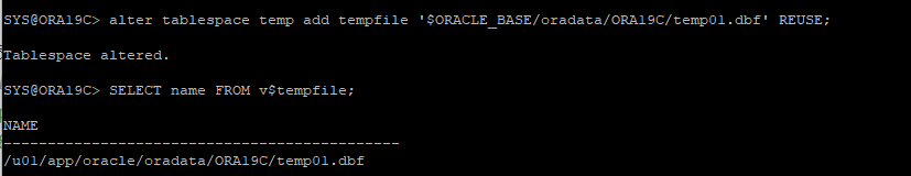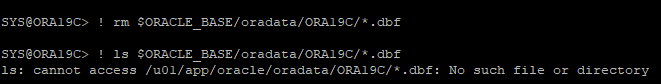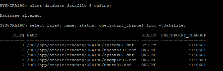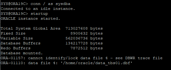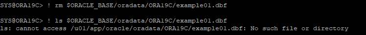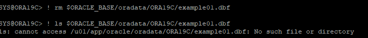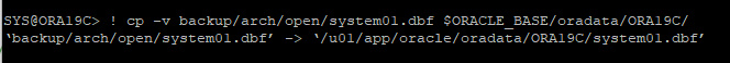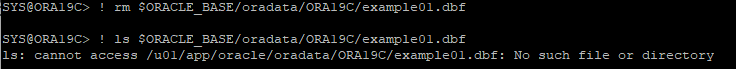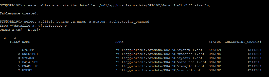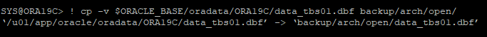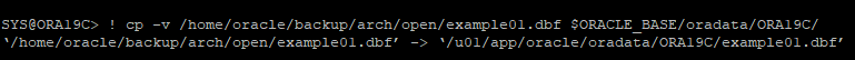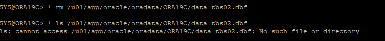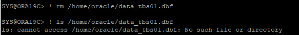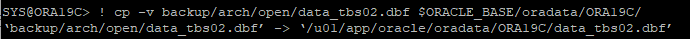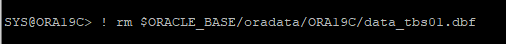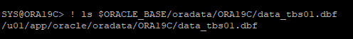 ALTER DATABASE CREATE DATAFILE '$ORACLE_BASE/oradata/ORA19C/data_tbs01.dbf' as 'home/oracle/data_tbs01.dbf';