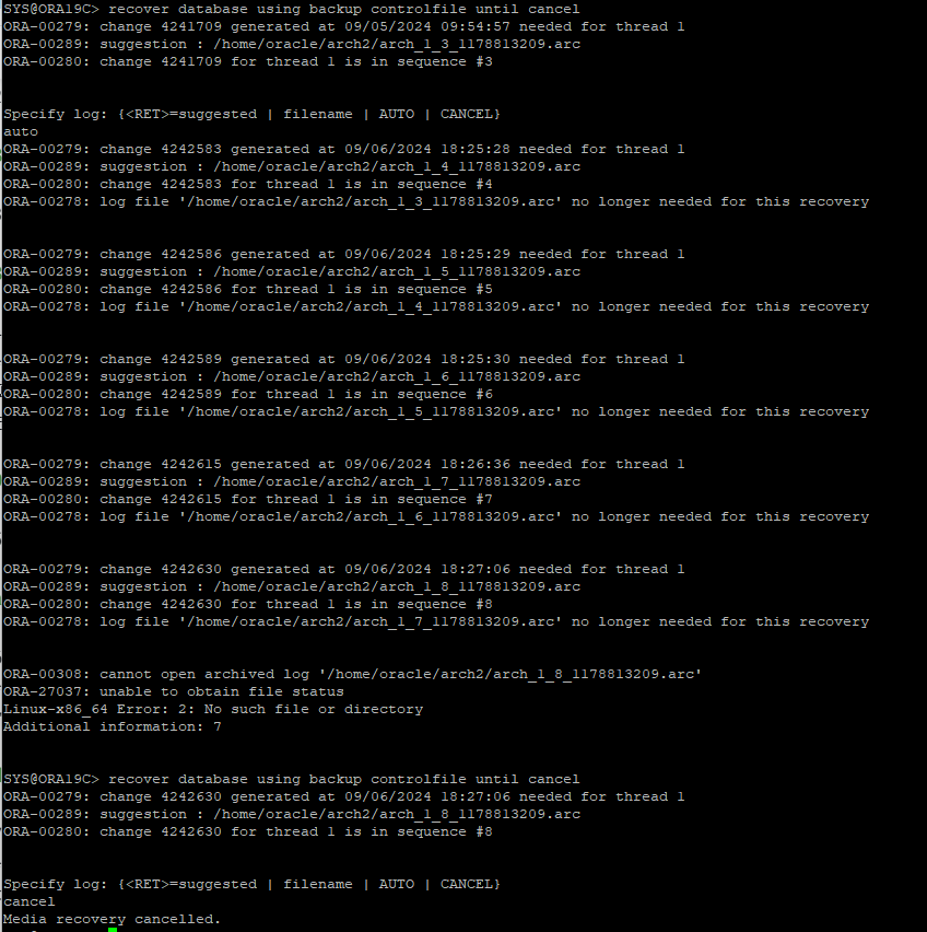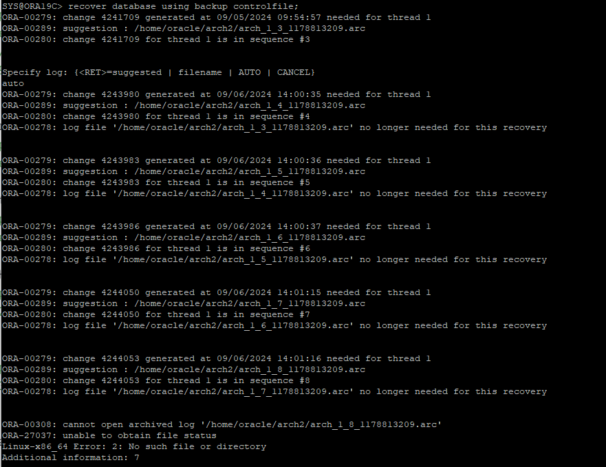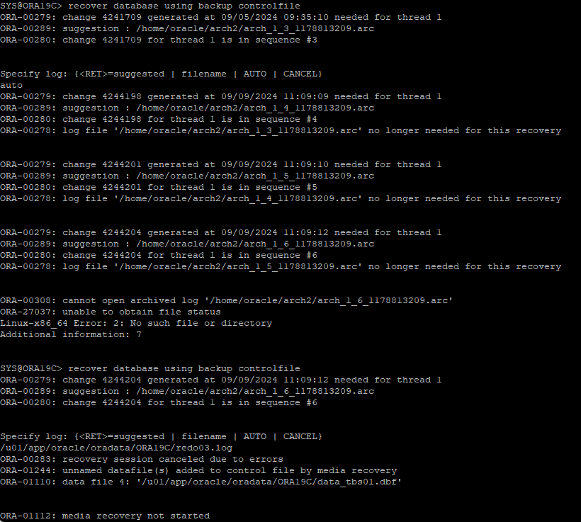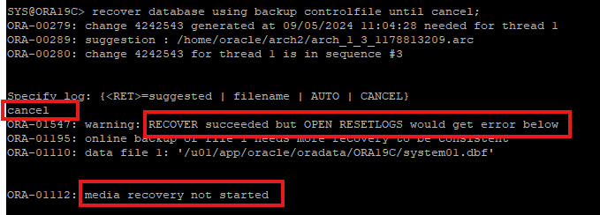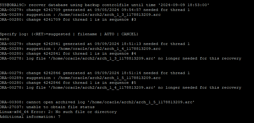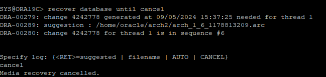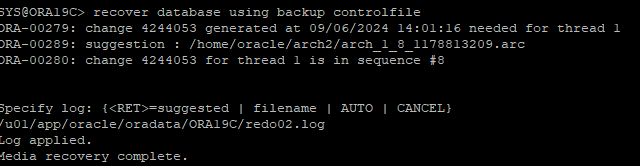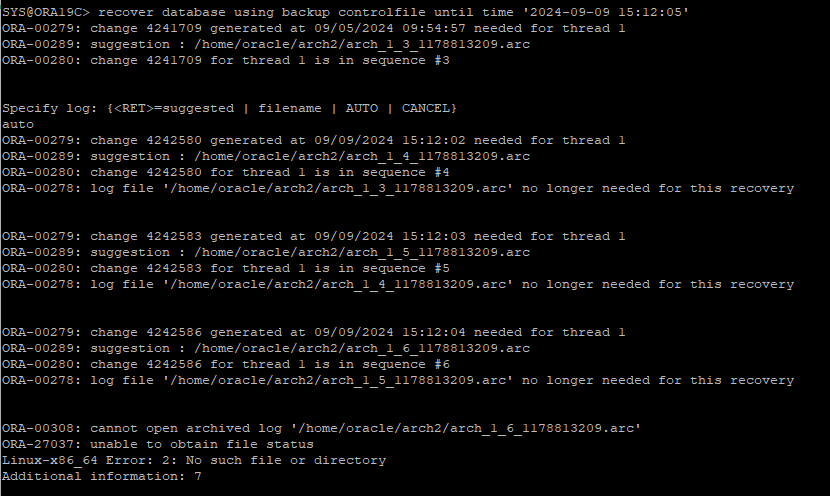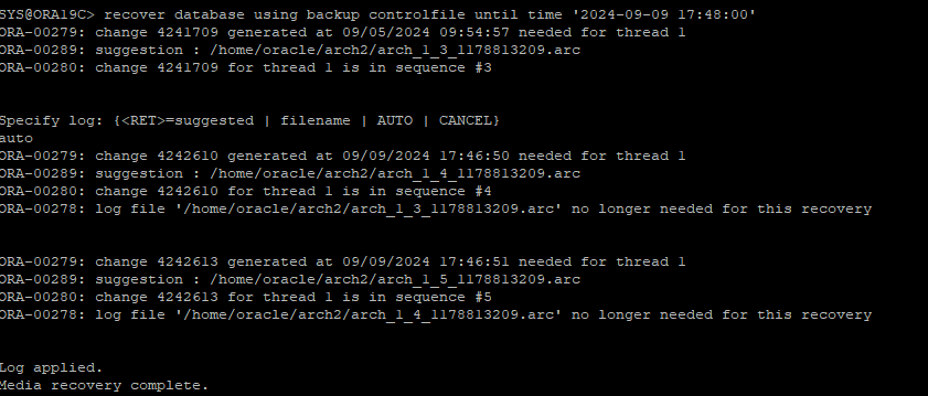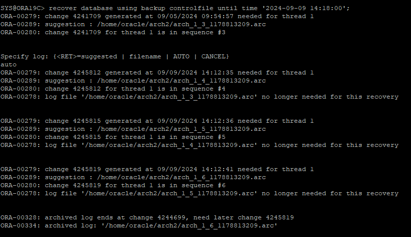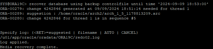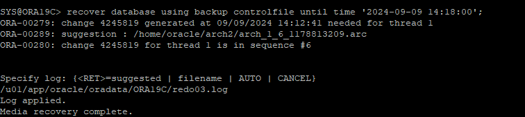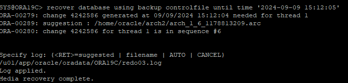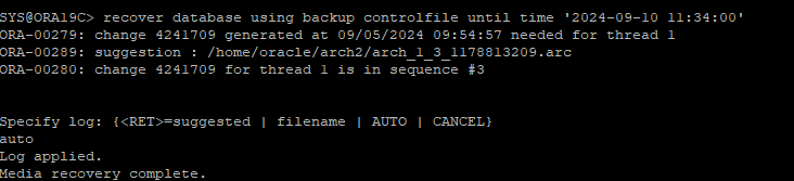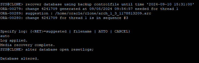 recover database using backup controlfile until time '2024-09-10 15:31:00'