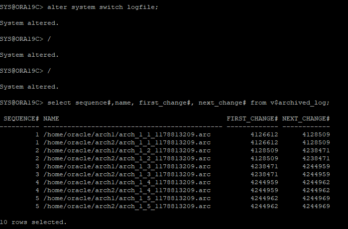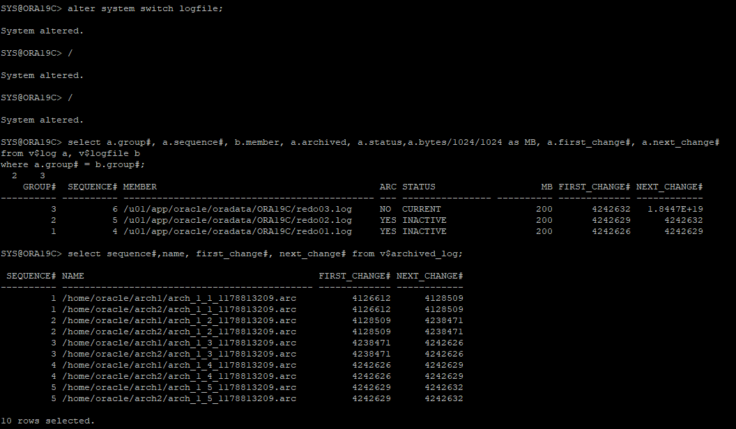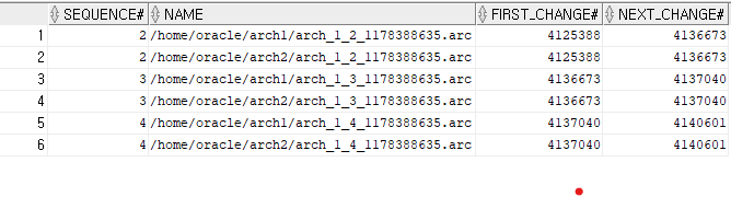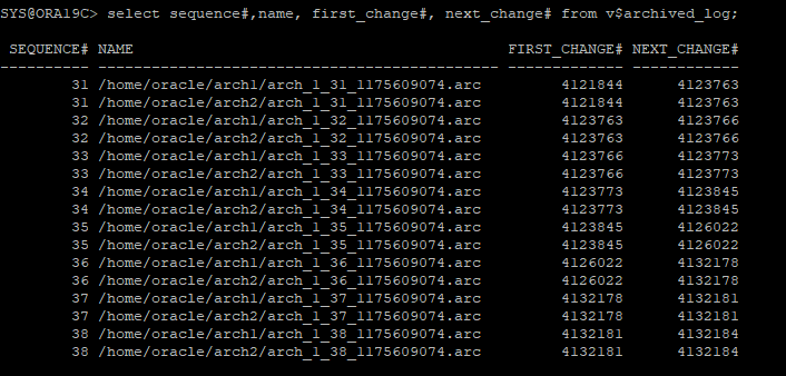 select sequence#,name, first_change#, next_change# from v$archived_log;