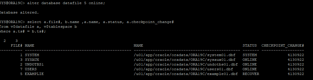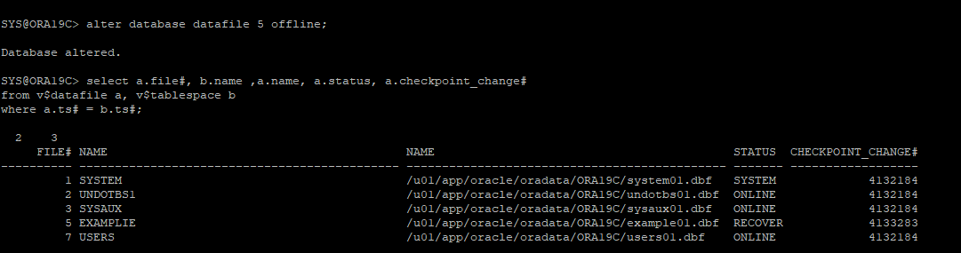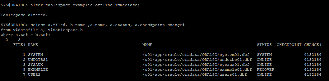 alter database rename file '/u01/app/oracle/oradata/ORA19C/example01.dbf' to '/home/oracle/temp/example01.dbf';