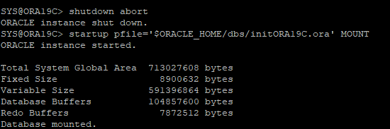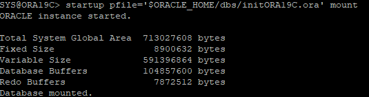 temp pfile을 이용해서 DB를 MOUNT 단계까지만 실행