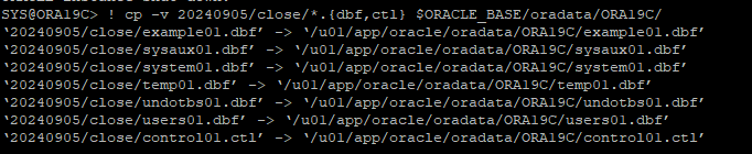 alter database rename file '/u01/app/oracle/oradata/ORA19C/sysaux01.dbf' to '/home/oracle/temp/sysaux01.dbf';