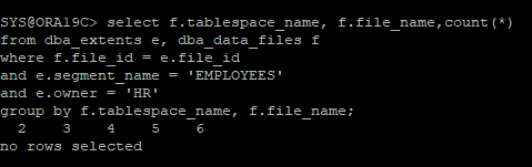 WHERE TABLESPACE_NAME = ''SYSAUX'' AND CONTENTS = ''TEMPORARY''';
