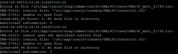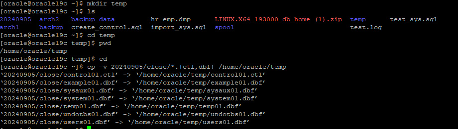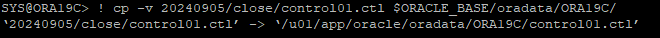 새로운 control file 위치로 설정한 디렉터리 생성 후 close 백업본 복사