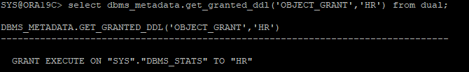 select dbms_metadata.get_granted_ddl('OBJECT_GRANT','HR') from dual;