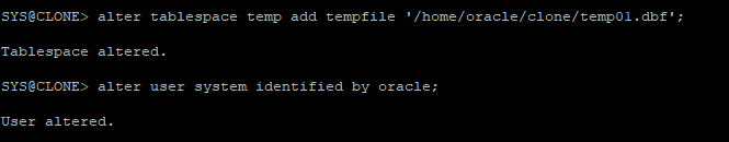 control file을 생성 하였기 때문에 temp 파일 설정 및 SYSTEM 계정 패스워드 설정