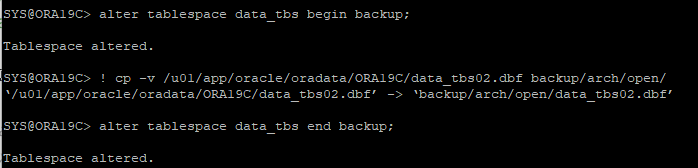 ALTER TABLESPACE 테이블스페이스명 BEGIN BACKUP;