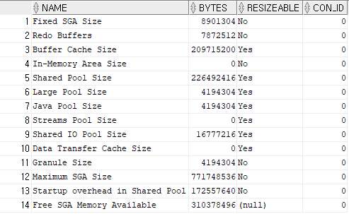 SELECT * FROM v$sgainfo;