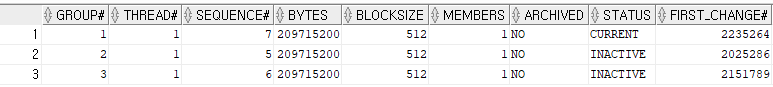 SELECT * FROM v$log;