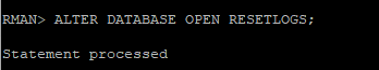 DB OPNE은 RESETLOGS로 해야하며, 이전 백업파일은 무의미 해졌기 때문에 삭제 하고 다시 백업 받아야 한다.