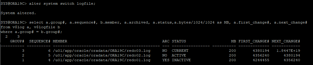 GROUP 3 '/u01/app/oracle/oradata/ORA19C/redo03.log' SIZE 200M BLOCKSIZE 512