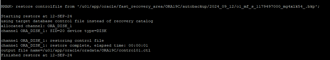 restore controlfile from '/u01/app/oracle/fast_recovery_area/ORA19C/autobackup/2024_09_12/o1_mf_s_1179511484_mg5cpnyn_.bkp';