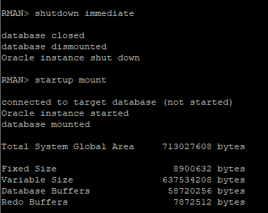DB 비정상 종료 후 RMAN으로 DB를 MOUNT 단계까지 실행