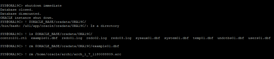 DB 정상 종료 후 특정 데이터파일 및 특정 아카이브파일 삭제
