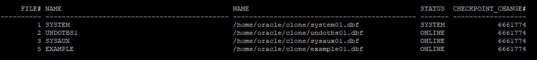 set newname for datafile 1 to '/home/oracle/clone/system01.dbf';