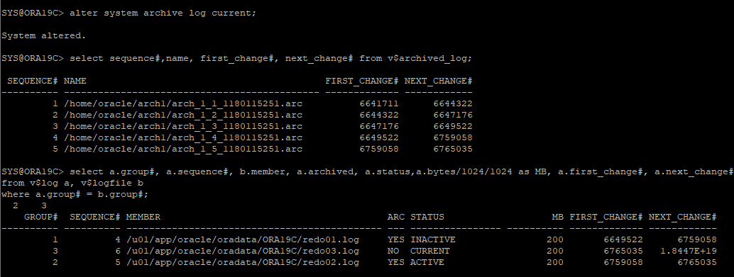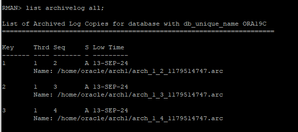 list archivelog all;