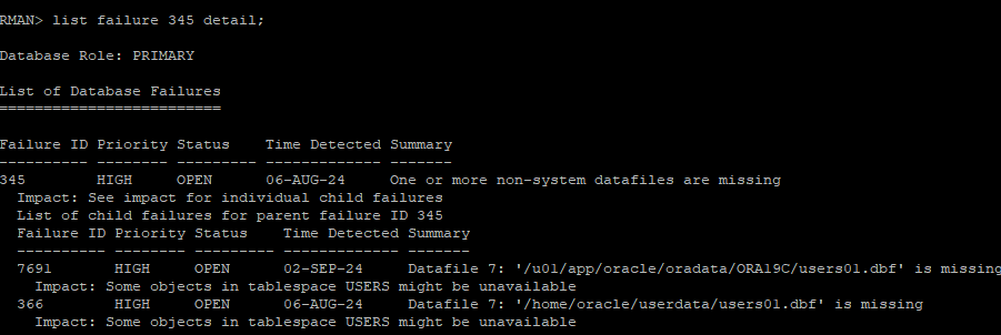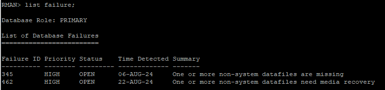 어떤 문제로 장애가 발생되었는지 RMAN에서 확인하는 방법