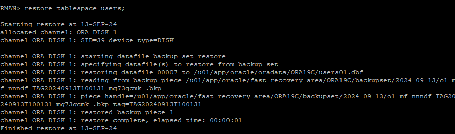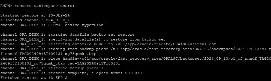 restore tablespace users;