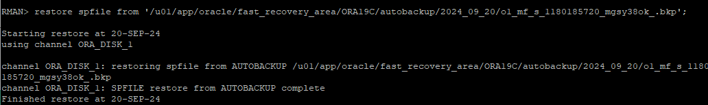 spfile을 restore 할때 from autobackup으로 시도해보지만 오류가 발생 시 수동으로 위치를 설정해주면 spfile을 restore 할 수 있다.