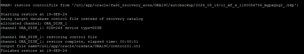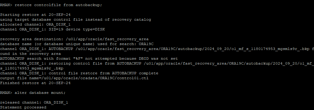 restore controlfile from autobackup;restore한 백업 control file을 이용해 mount 단계까지 실행