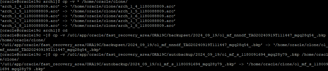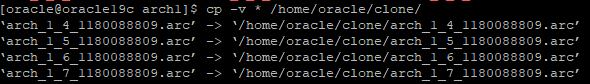 아카이브로그 파일들 전체 clone 디렉터리로 복사