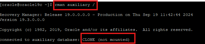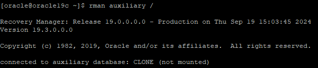 아직 target DB가 없기 때문에 RMAN을 auxiliary로 실행