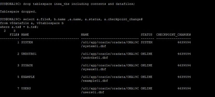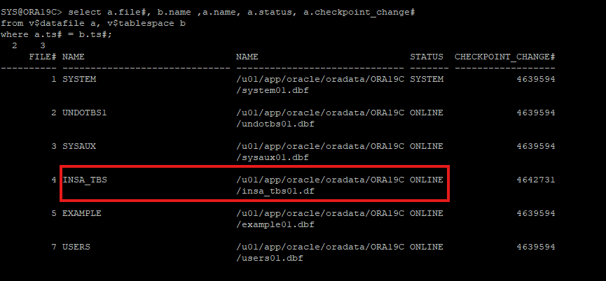 sql 'alter tablespace insa_tbs online';