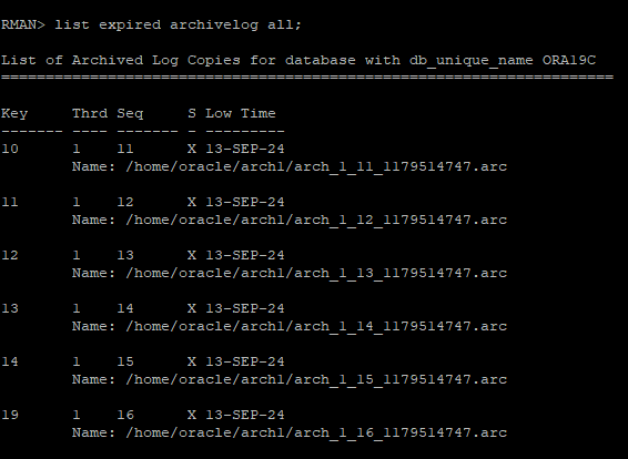 list expired archivelog all;
