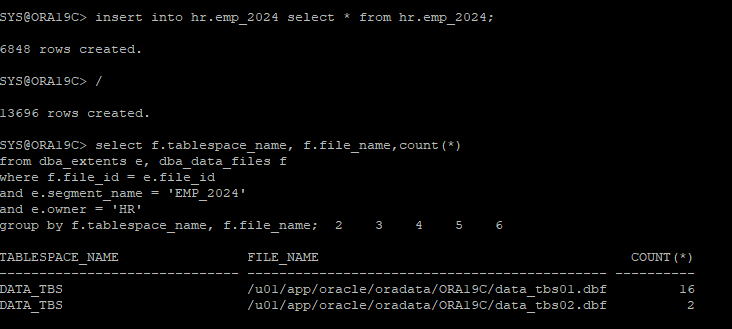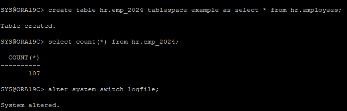 create table hr.emp_2024 tablespace data_tbs as select * from hr.employees;