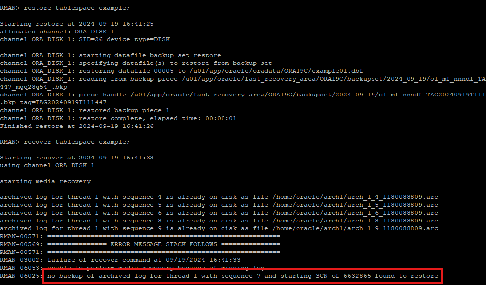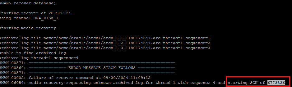 RMAN 으로 받은 가장 최근의 백업본 SCN 이후에 대한 아카이브 로그 파일이 있는지 확인