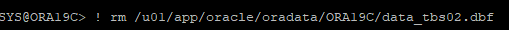 alter database create datafile '/u01/app/oracle/oradata/ORA19C/data_tbs01.dbf';
