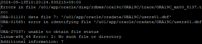 추가한 데이터파일은 백업을 안해놨기 때문에 데이터파일 레벨로 백업