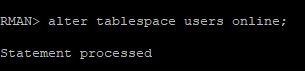 sql 'alter tablespace users online';