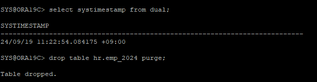 생성한 테이블 삭제 후 log miner를 통해 삭제 시간 확인