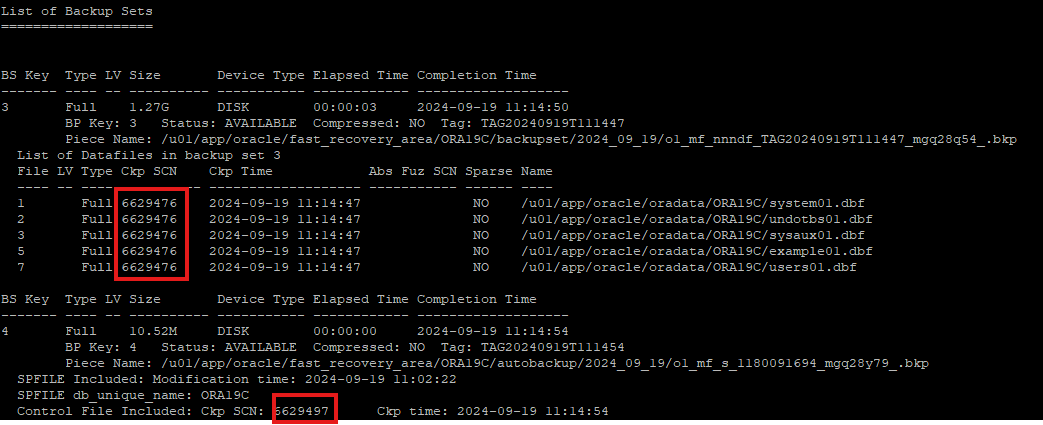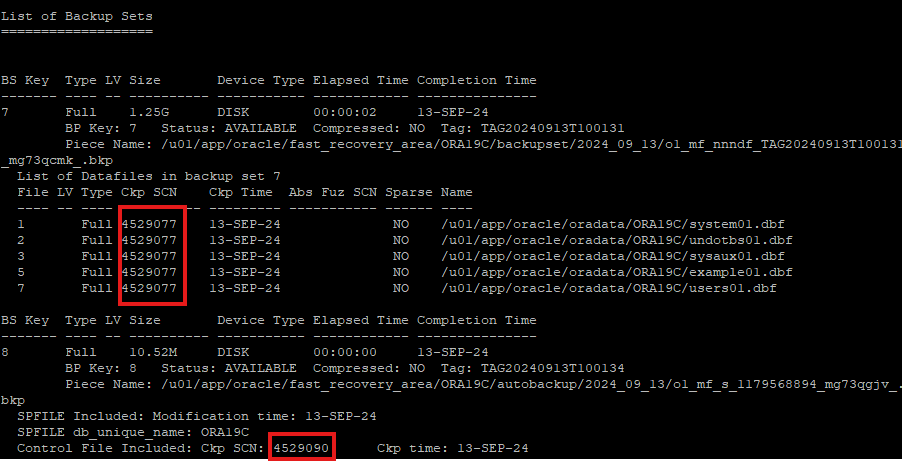 online backup 받은걸 확인하면 datafile 과 control file의 scn번호가 다른걸 확인할 수있는데, user managed 방식에서는 scn 차이때문에 복구가 안됬지만 RMAN에서는 SCN이 달라도 복구가 가능하다.