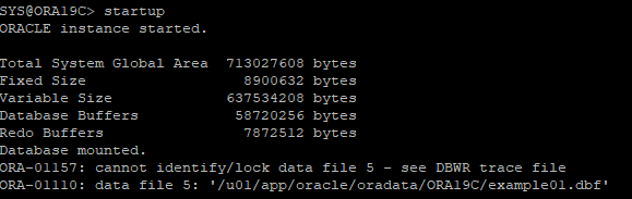 startup 하지만 특정데이터파일이 없어 오류 발생(mount 단계까지는 실행됨)