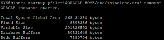 startup pfile='$ORACLE_HOME/dbs/initclone.ora' nomount